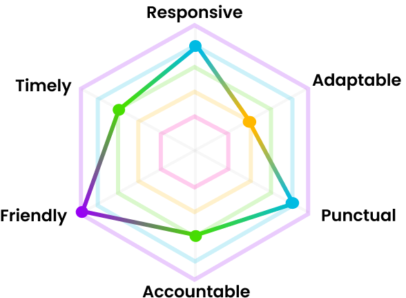 Moving onto the review section, we wanted to create a graphic that visually symbolized feedback that event producers can leave on the DJ’s profile in a fun way. Although the idea of this graphic was liked by our users, 2/6 found that some of the initial criteria felt irrelevant to the industry. For example, we originally had the DJ’s skill and creativity levels listed, but because of the vetting process that users would go through to even be on the app in the first place, these qualities would already be assumed. So, we changed them to “adaptable” and “accountable”.